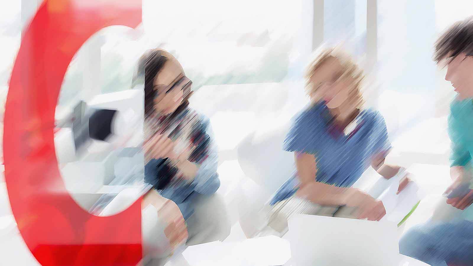 • View through door of entrepreneurs working in office